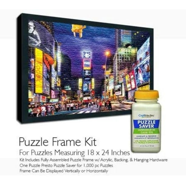 18X24 Wood Puzzle Frame - 5 out of 5 stars.. So the best thing to do here is to check with the framer you intend to buy from and see what thickness they can accommodate, then determine if their product works for your puzzle needs. This sturdy frame is 18 by 24 and has a natural finish. The frame will come with a sawtooth hangers only. Holds a 550 piece puzzle from masterpieces or any 18 x 24 puzzle. White | 1.25 puzzle picture frame.